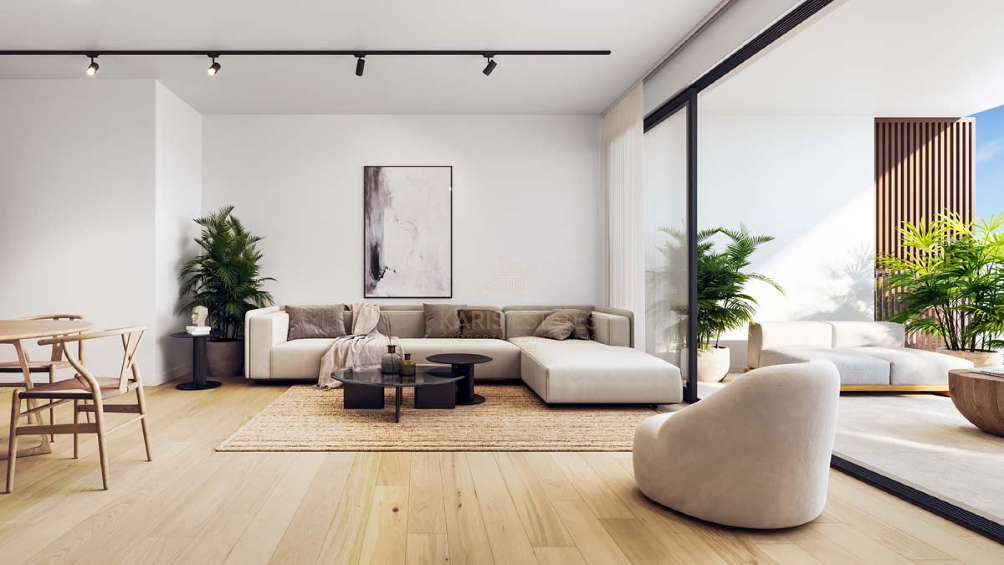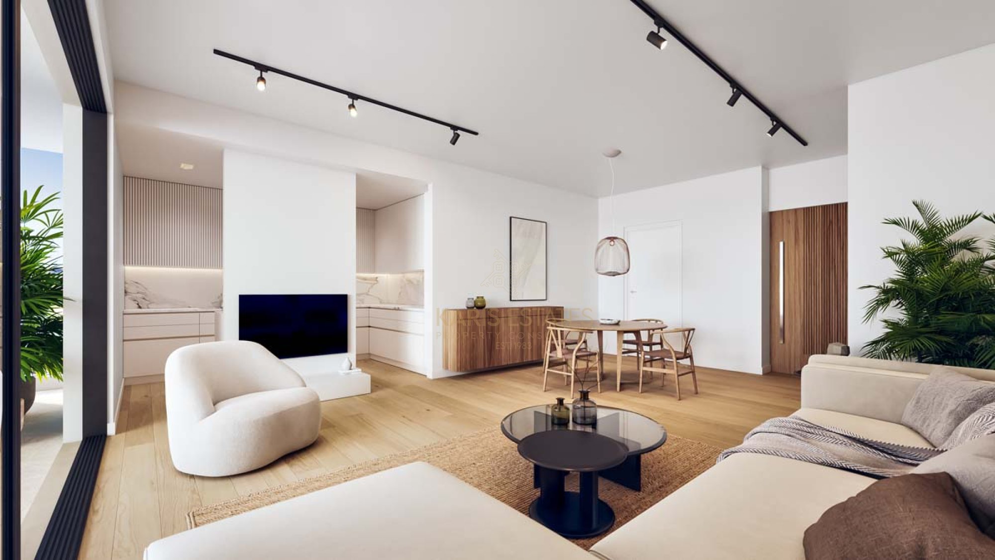 Living areas, bedrooms and corridors will be covered with high quality laminate timber floor of price €25/m2 (installation and skirting will be included in the price).