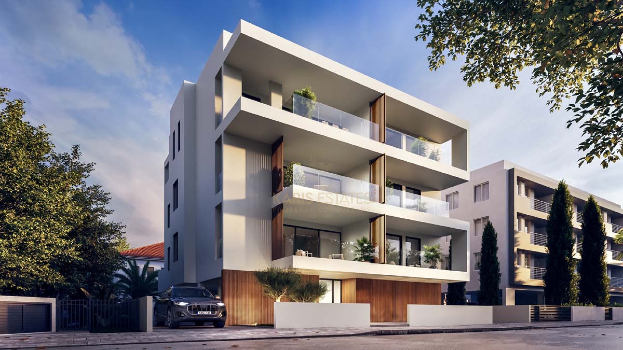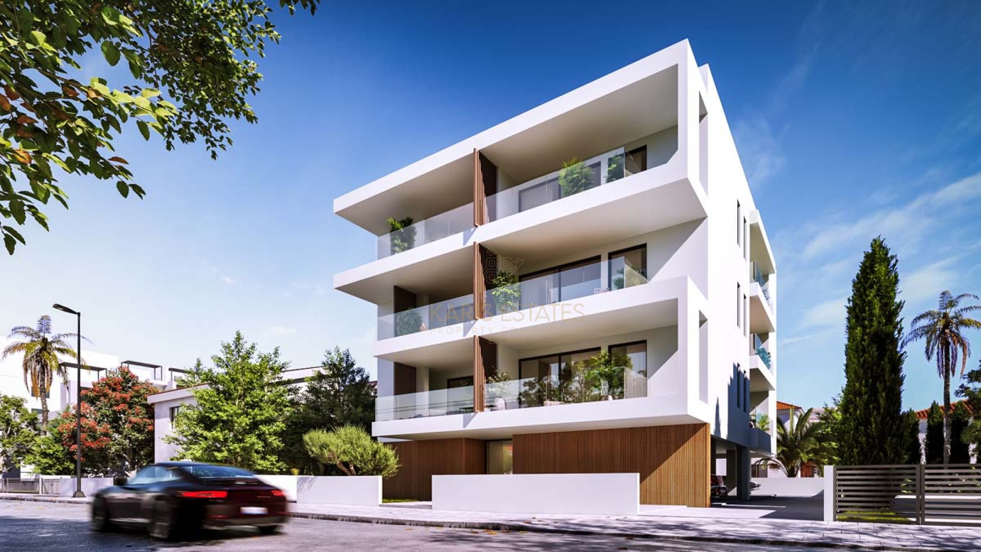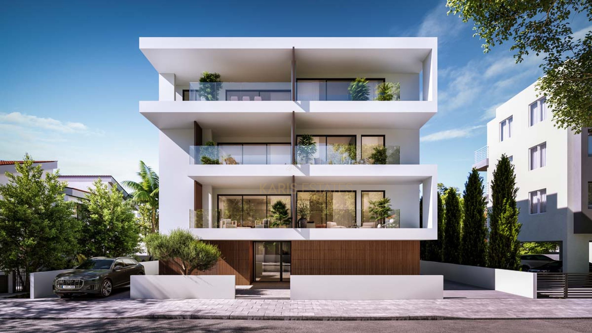 The building has a unique architectural design with contemporary architectural elements characterizing the façade of the building. Internally the building’s form offers spacious living spaces with large sliding doors leading to large terraces for all the residences.