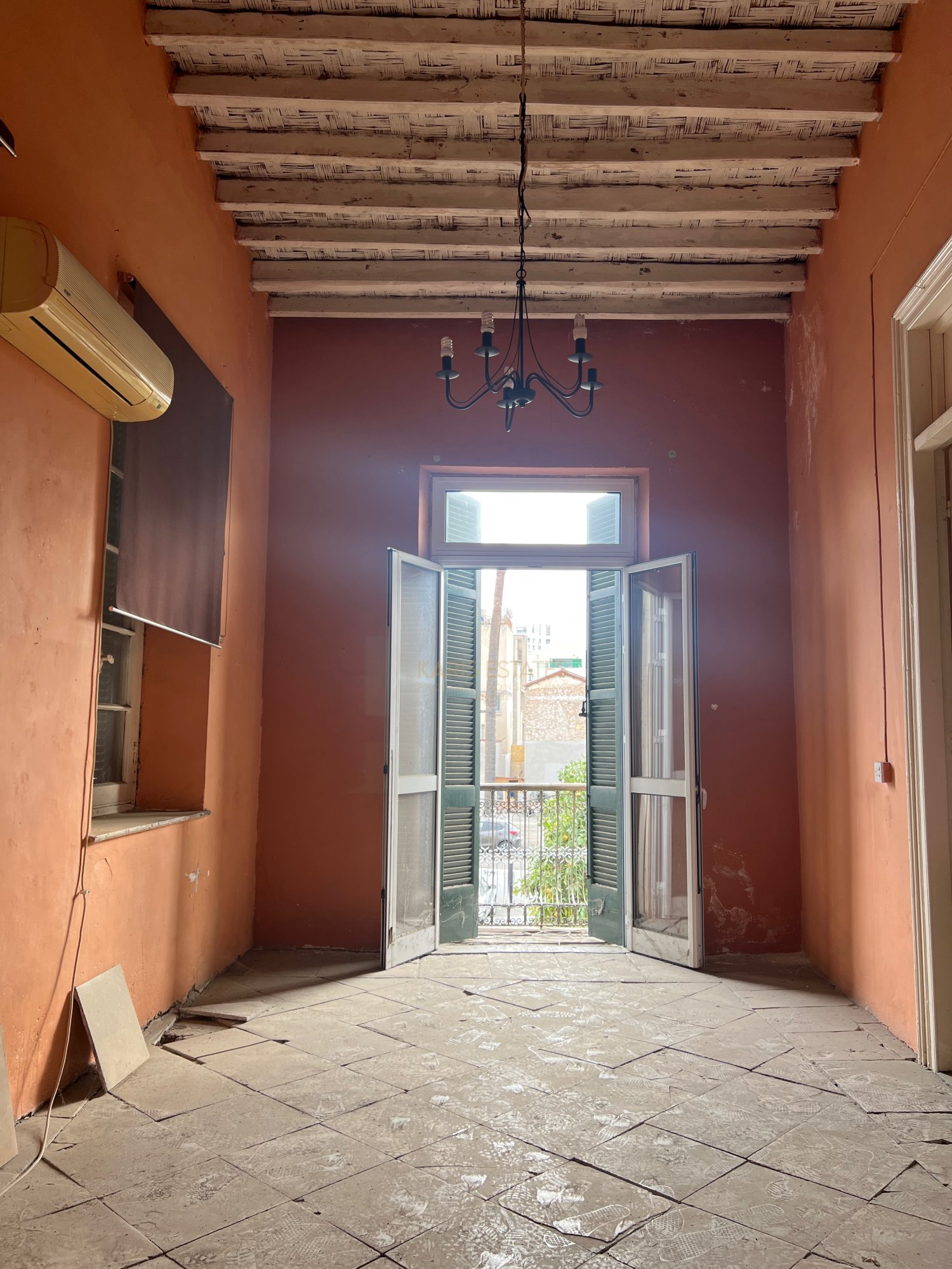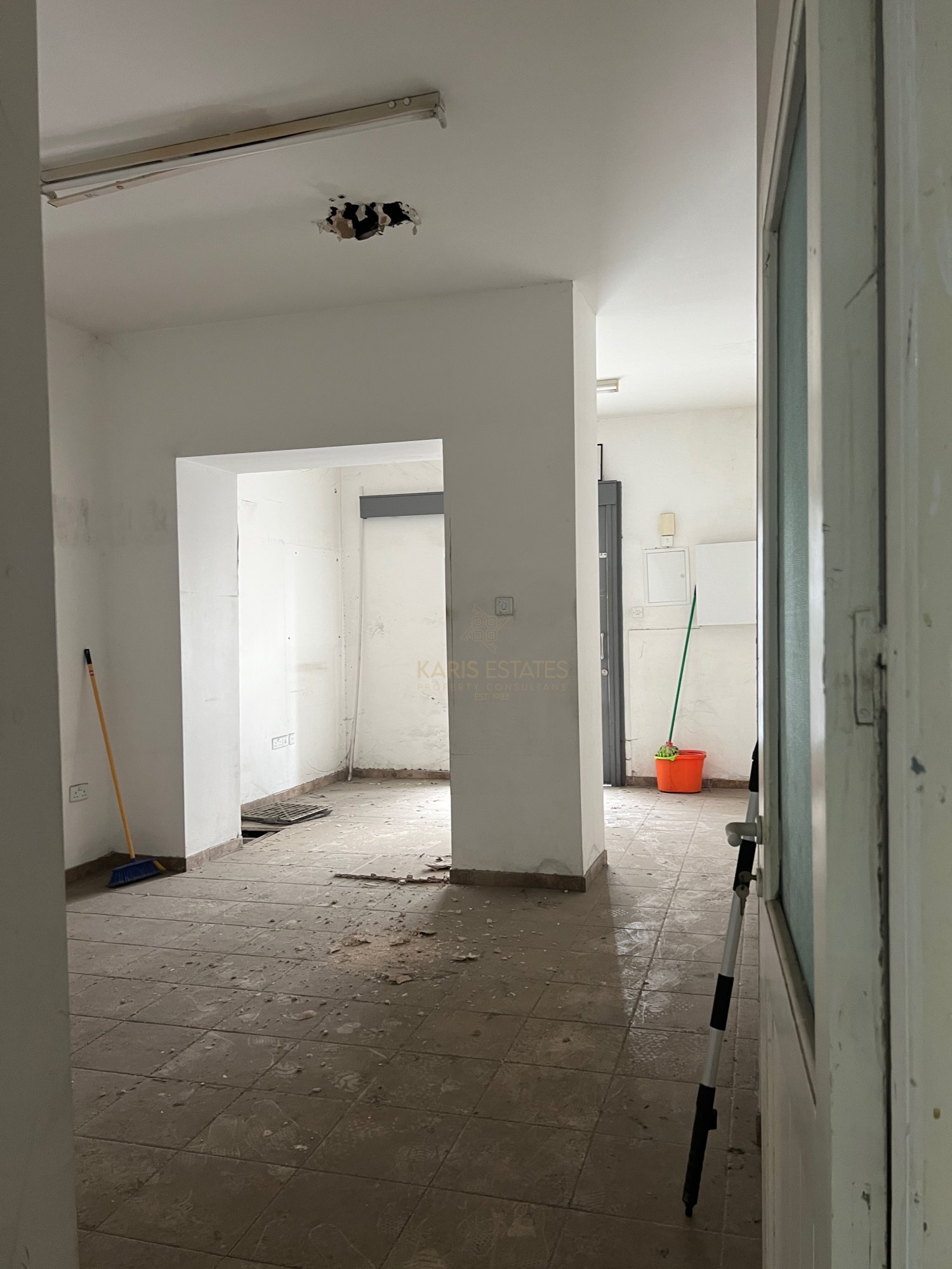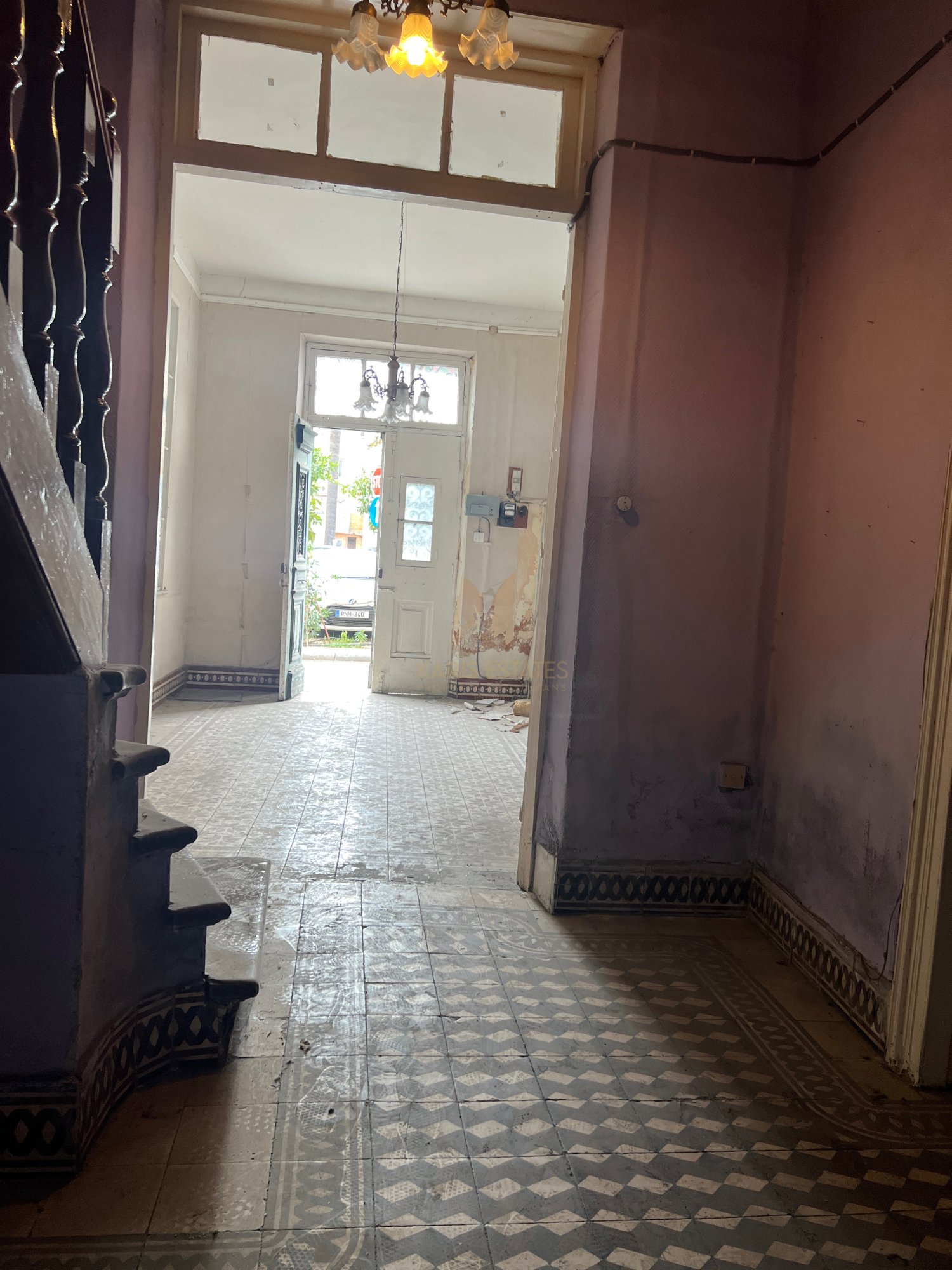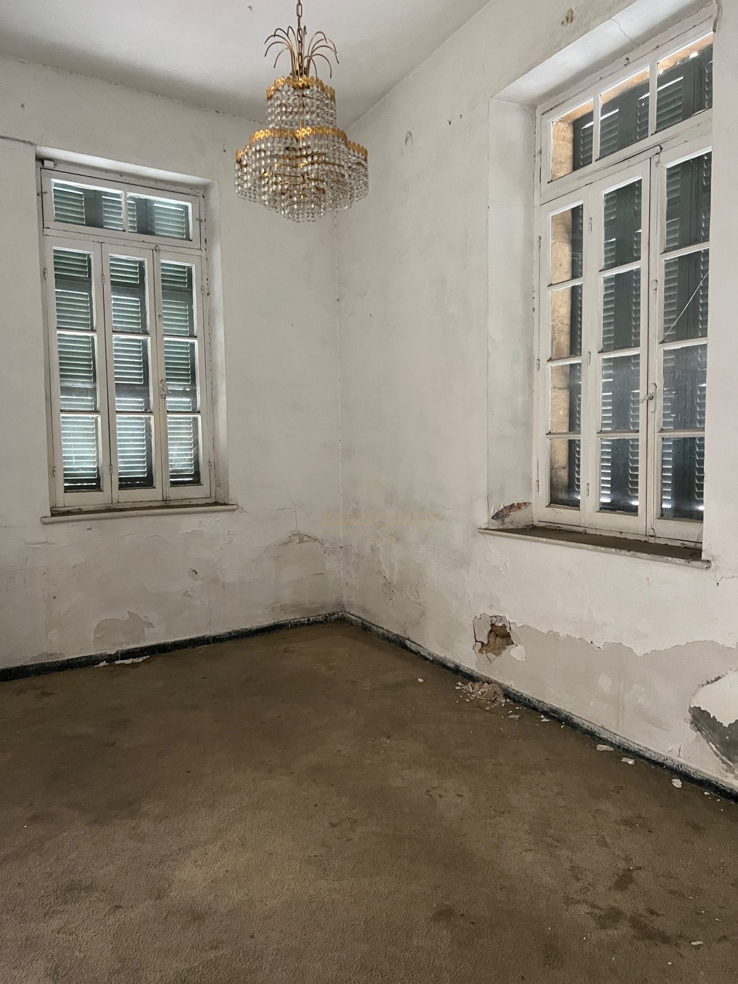 Configured into an entrance hall, what is called 'iliakos' in the traditional cypriot architecture, with the original marble tiles intact, a separated living room on the left side and a separated dining room in the rear left side of the house, and on the right of the main hall there is currently another room and a large kitchen area and a guest wc.