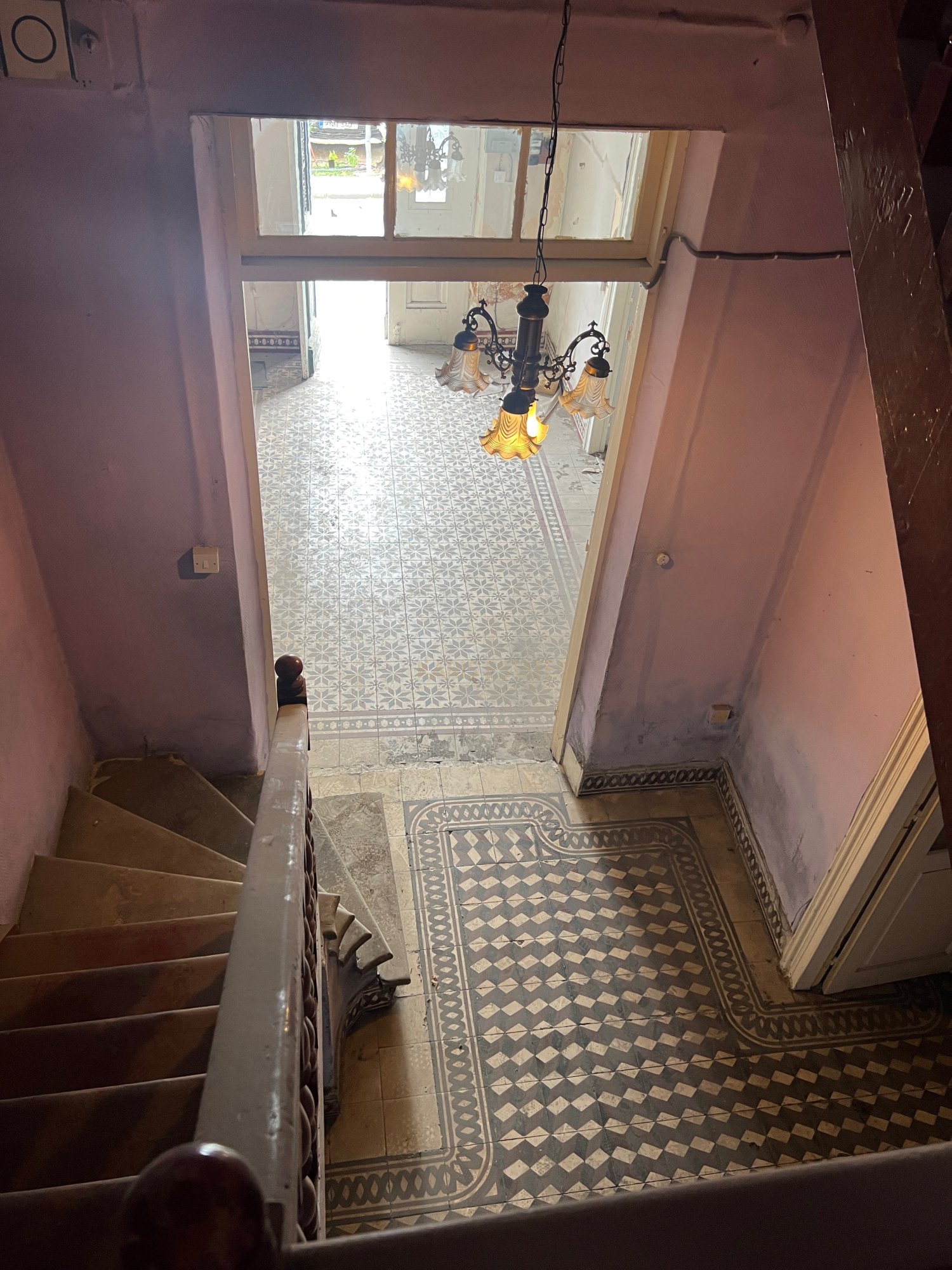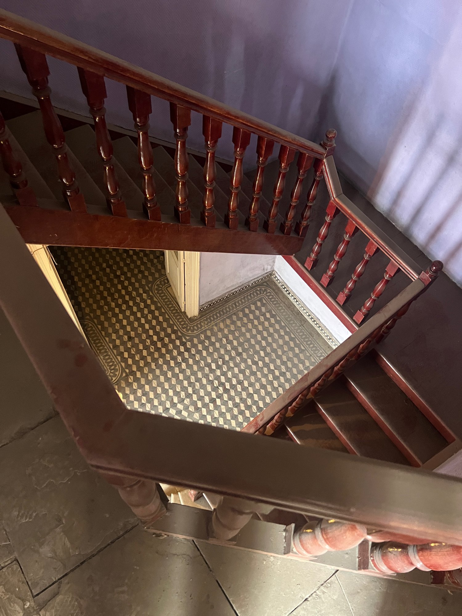 The original marble and wooden staircase lead tot he first floor where there are three bedrooms and a main bathroom.