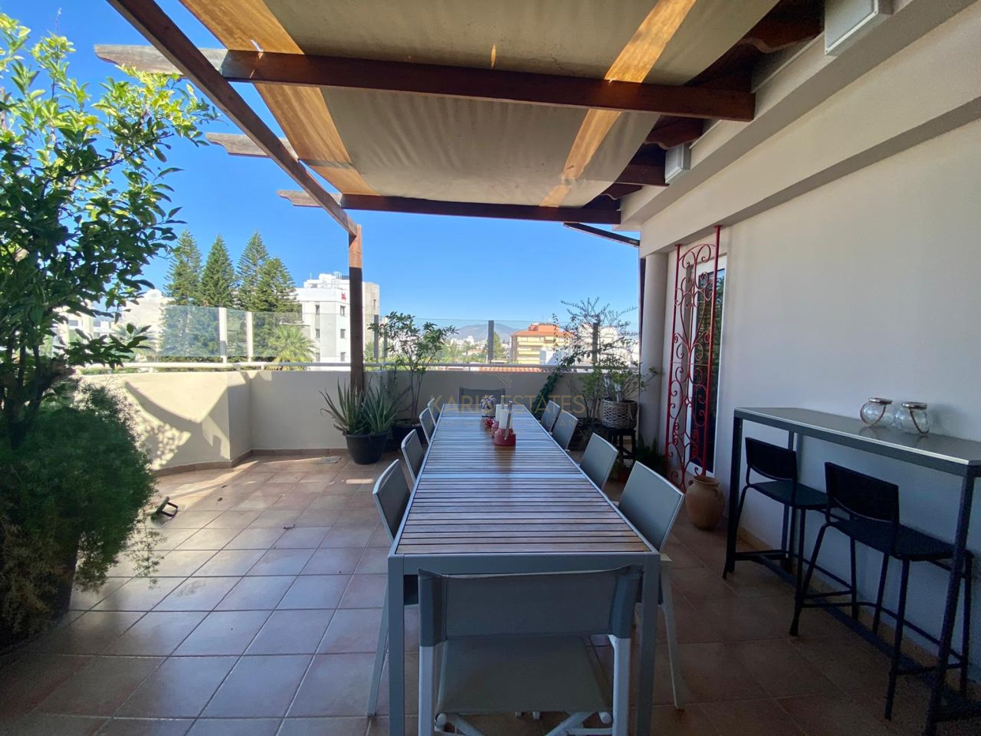 Spacious top-floor apartment in Egkomi, opposite the Italian Embassy and close to Ippokratio Hospital. Conveniently located just an 8-minute walk to Alphamega Supermarket and a 5-minute drive to the European University and University of Nicosia.