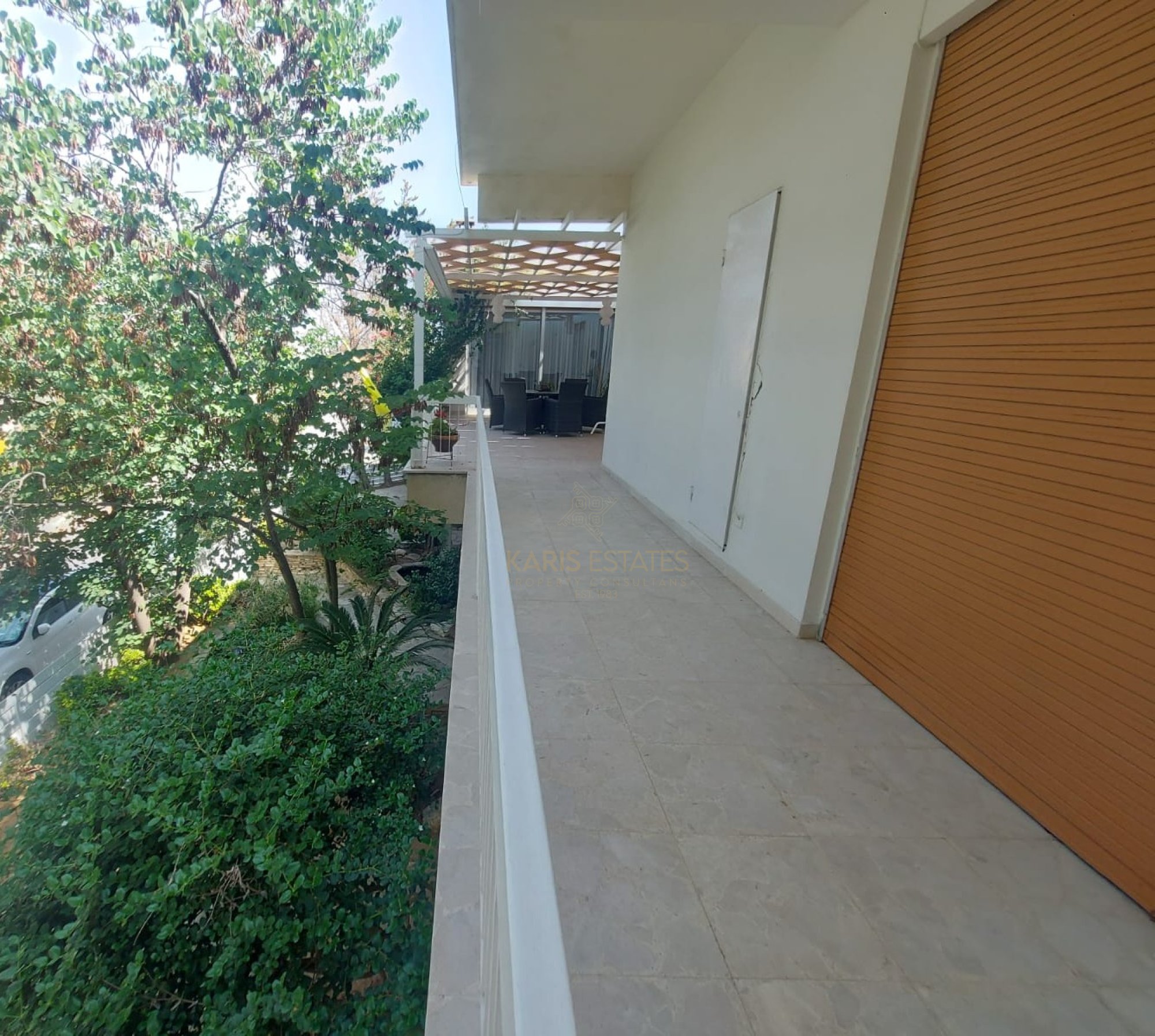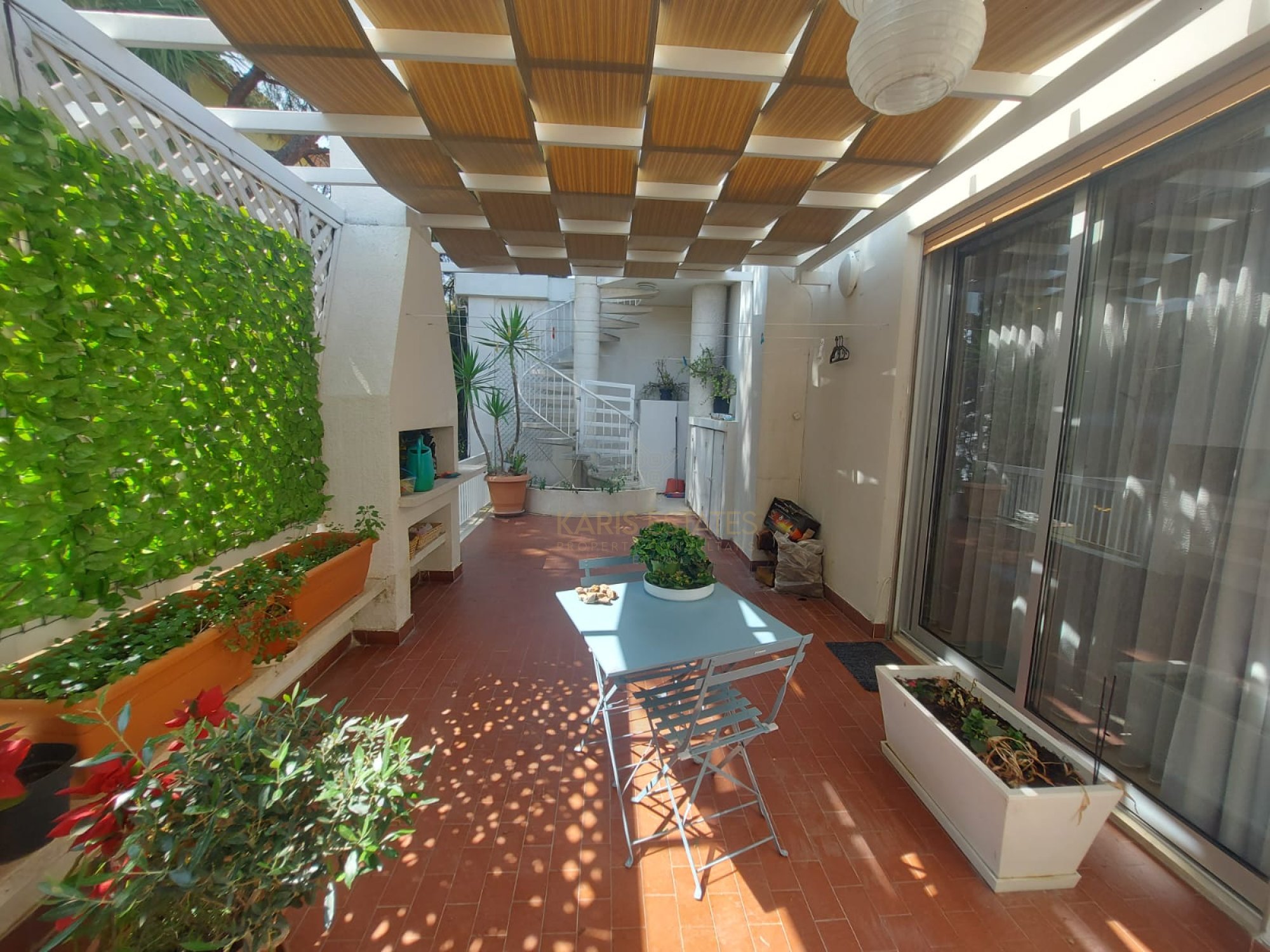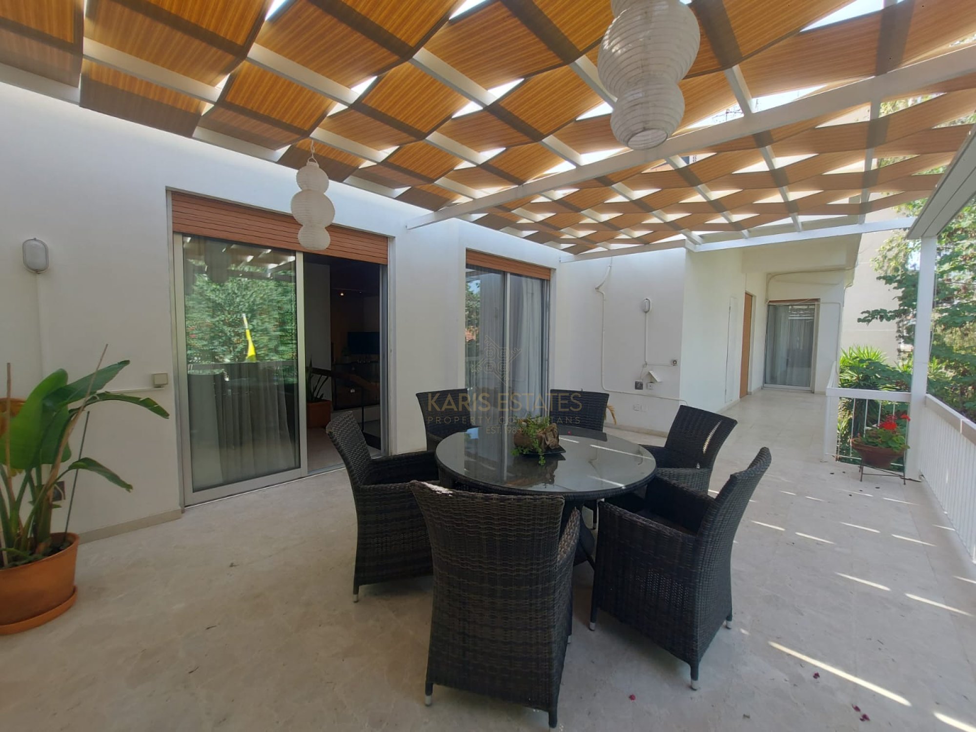 West-facing main veranda + pergola-covered outdoor spaces