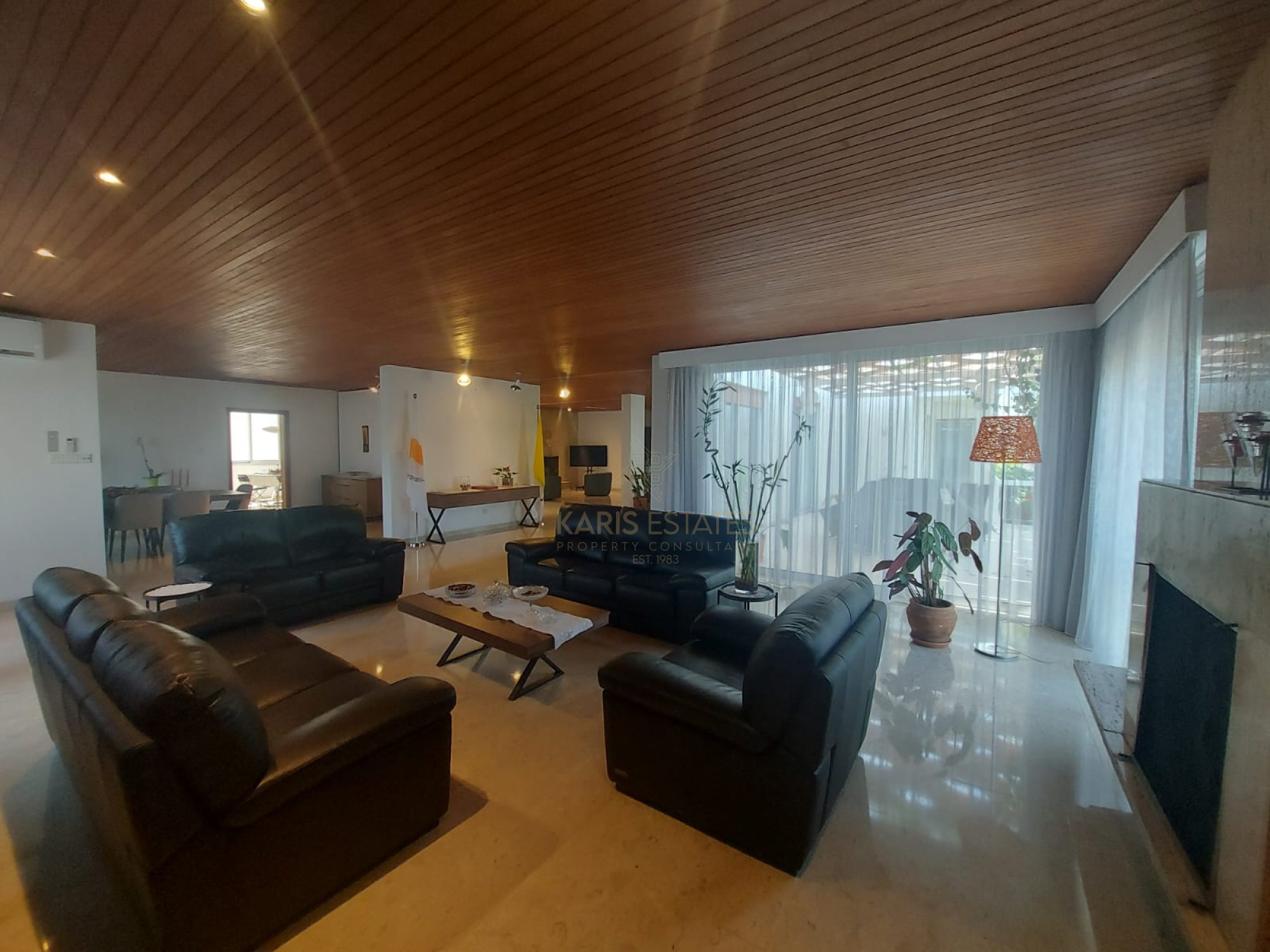 Expansive interconnected living spaces with 2 fireplaces