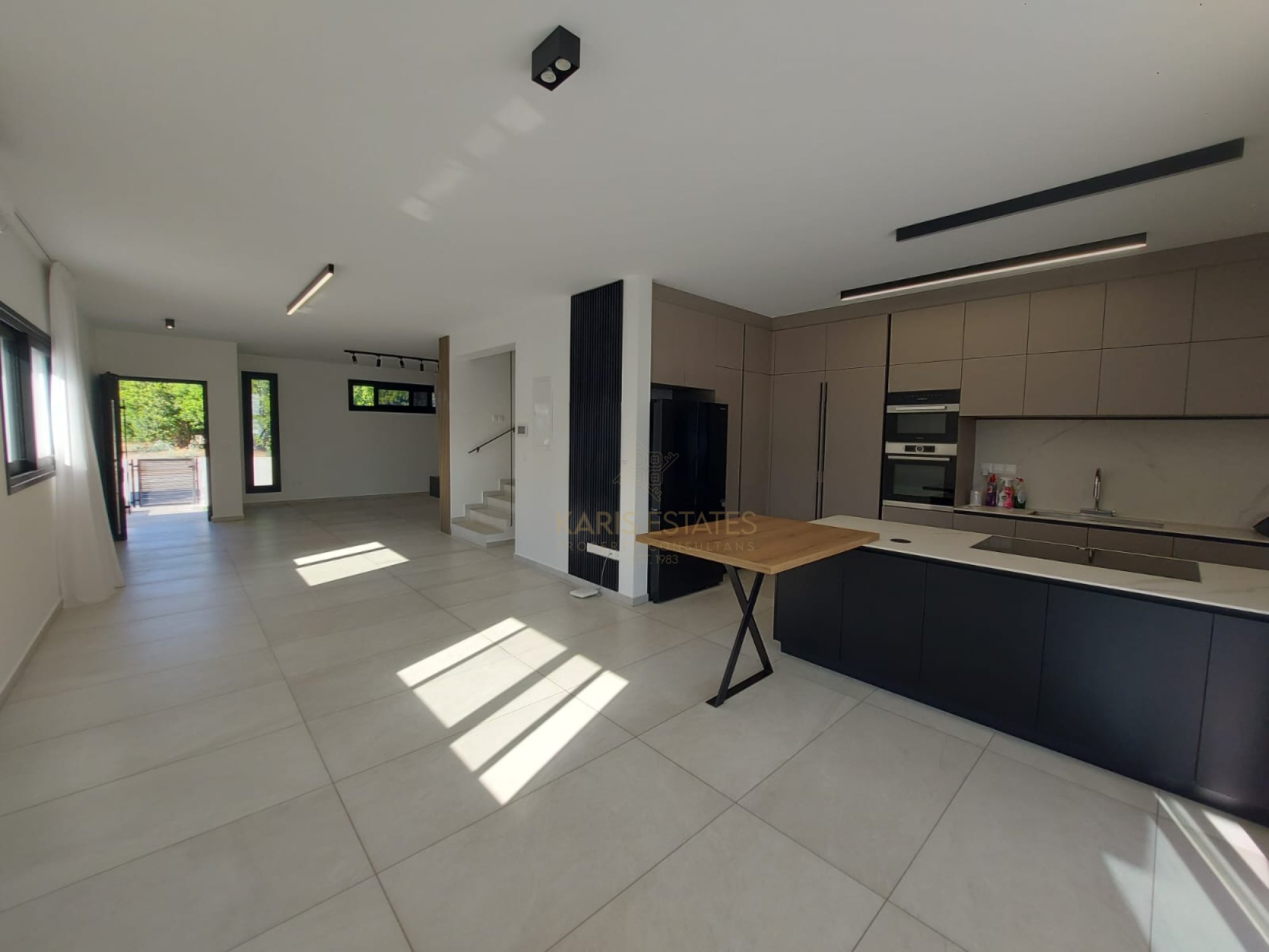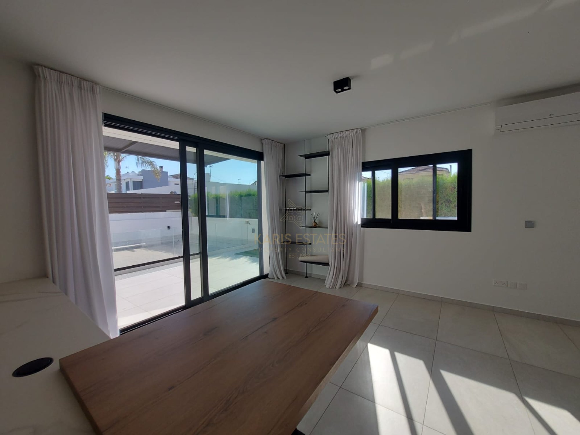 Open-Plan Layout: living, dining, and kitchen area with direct access to the pool & veranda
