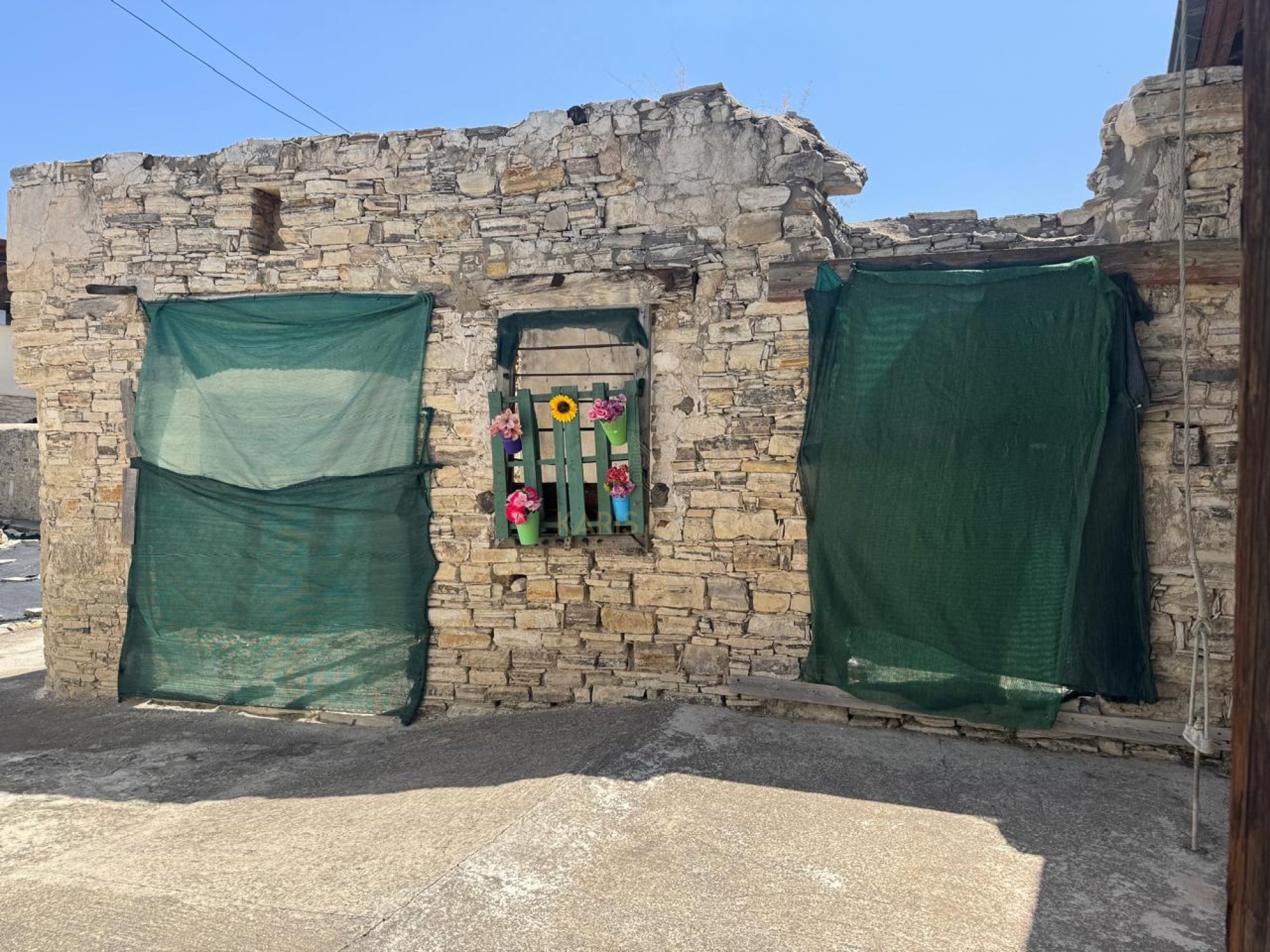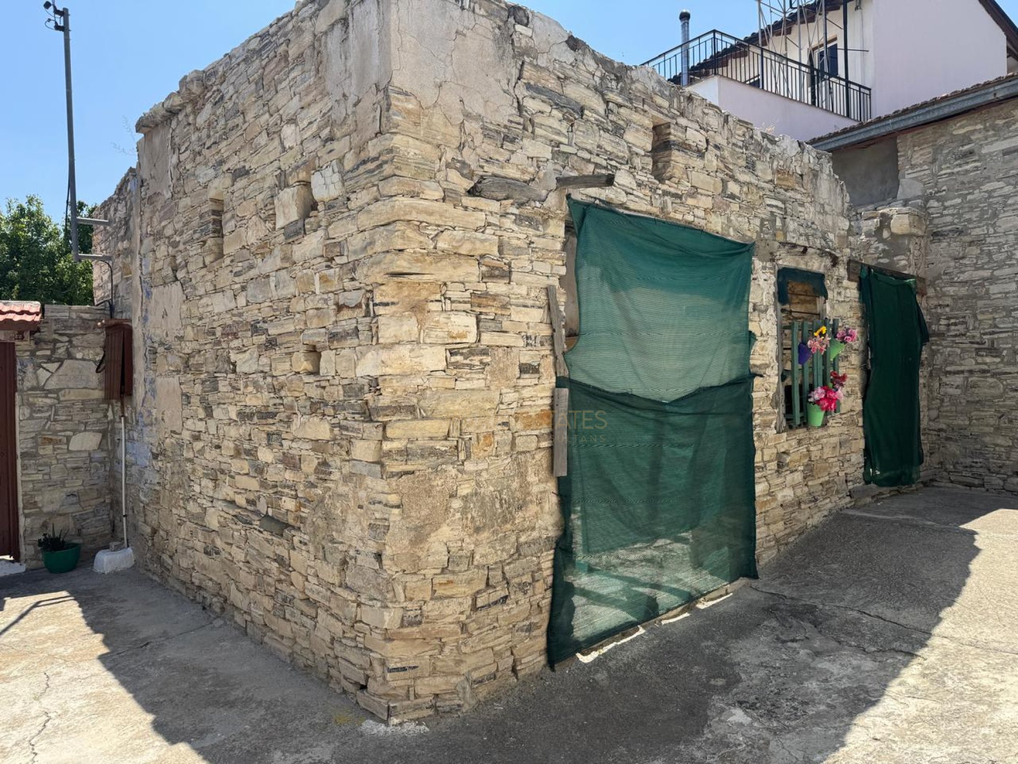 • Structure: Traditional stone-built single-storey building with timber roof (mostly collapsed), consisting of 2 auxiliary rooms, approx. 32 m².