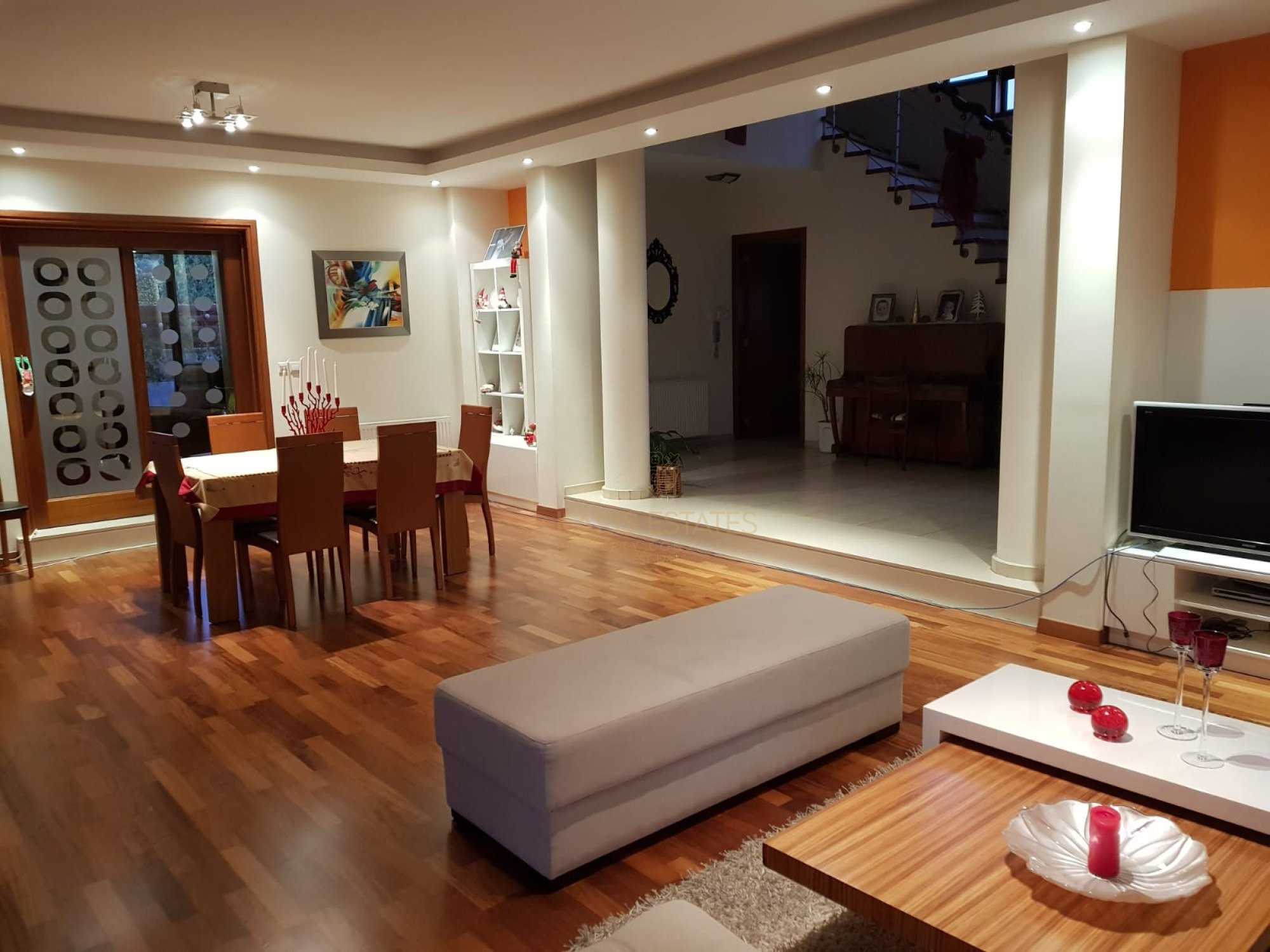 Large parquet-floored living room