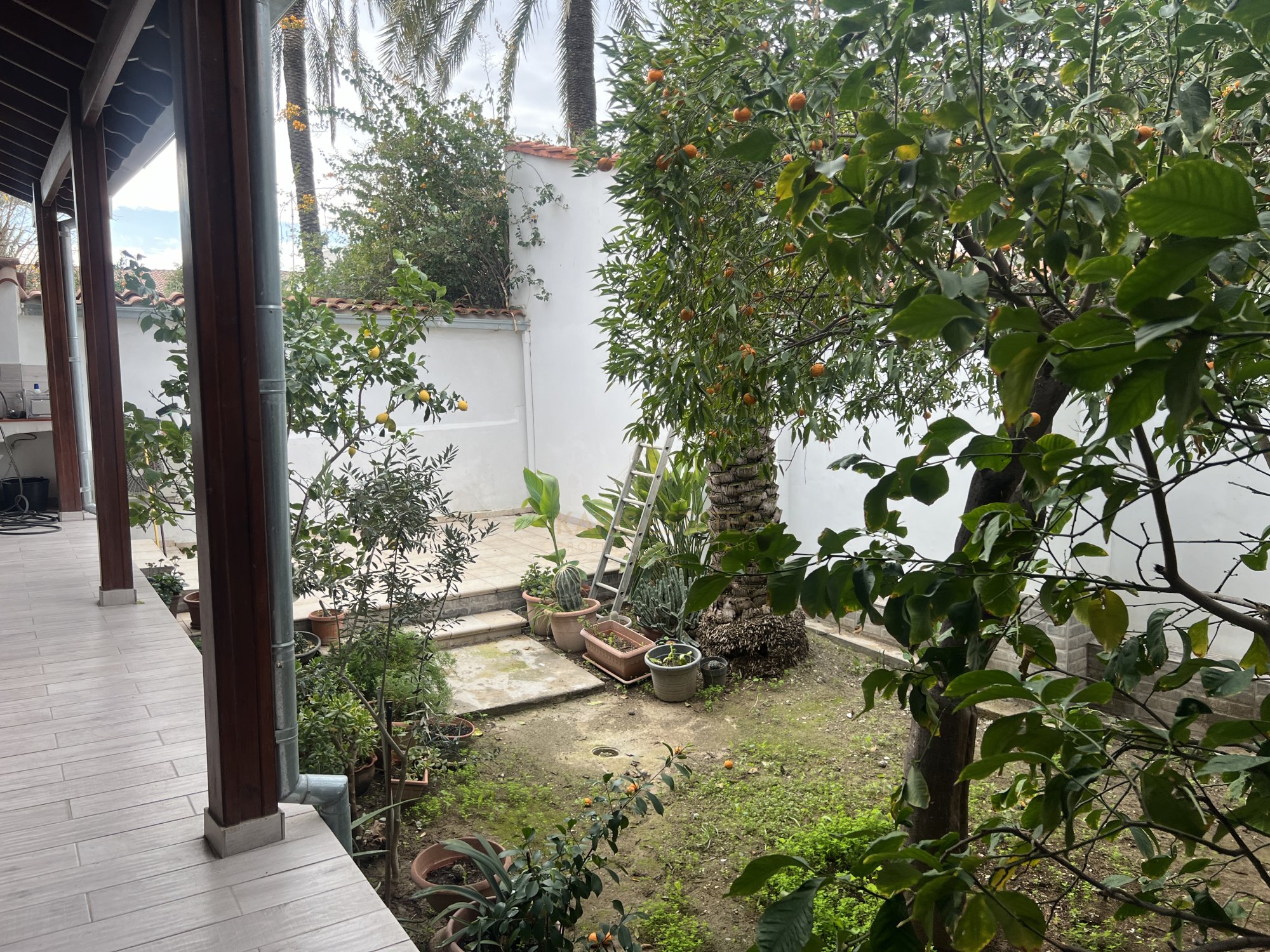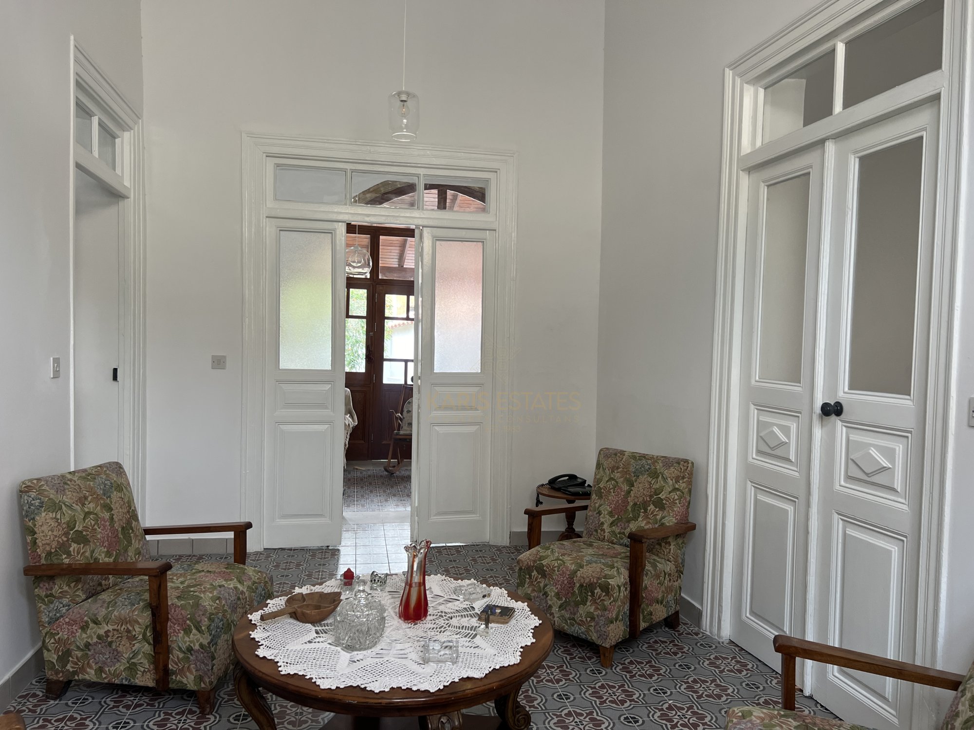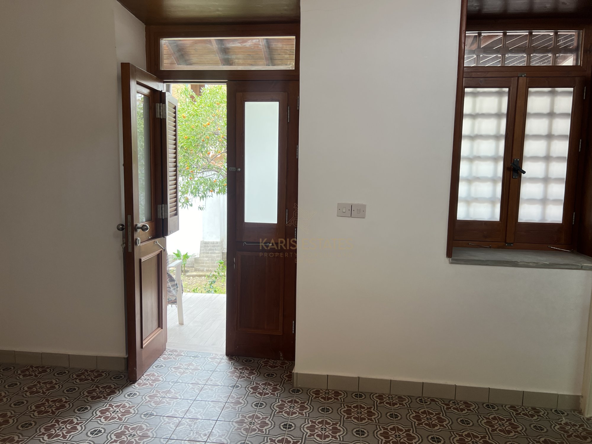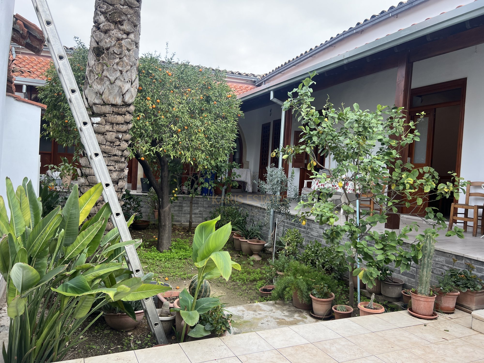 Layout: The home features a classic iliakos (main hall), with a bedroom to the right and an open-plan kitchen, dining, and living area to the left, seamlessly extending to the garden through two large arches