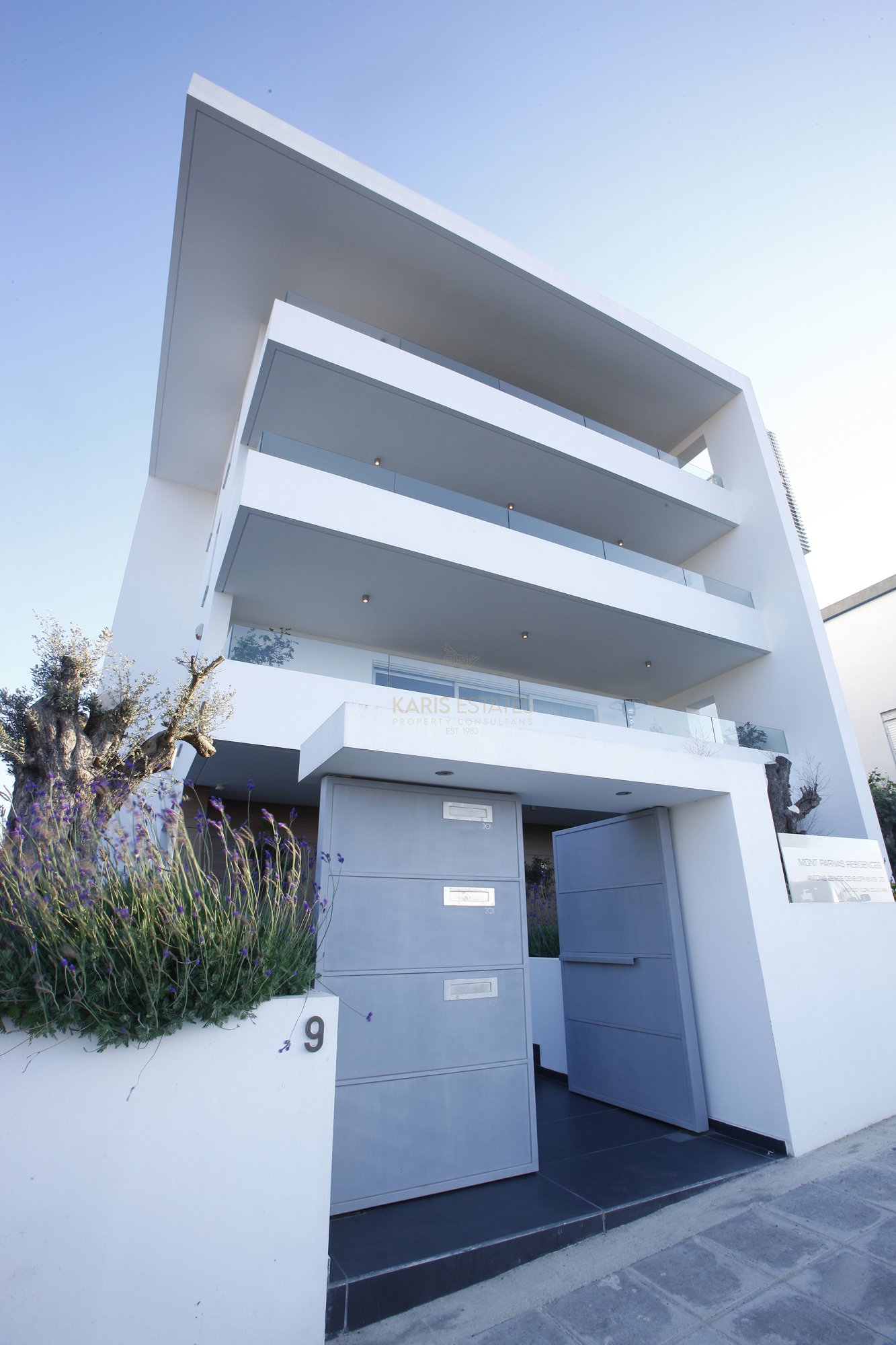 This building in Engomi offers nine luxury one- and two-bedroom apartments with spacious interiors, large verandas, and modern finishes.