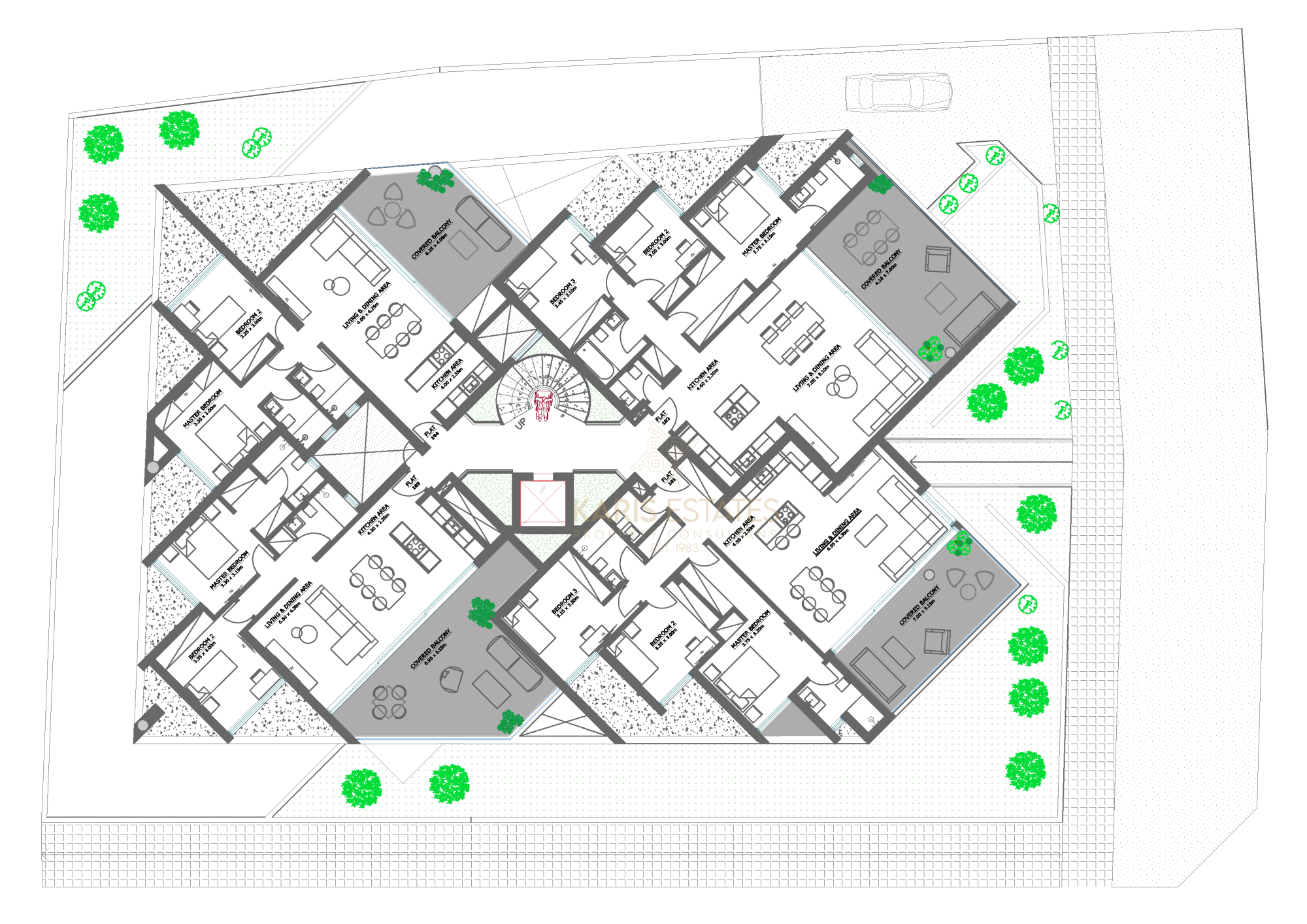 - Electrically operated blinds, videophone access control, state-of-the-art elevators