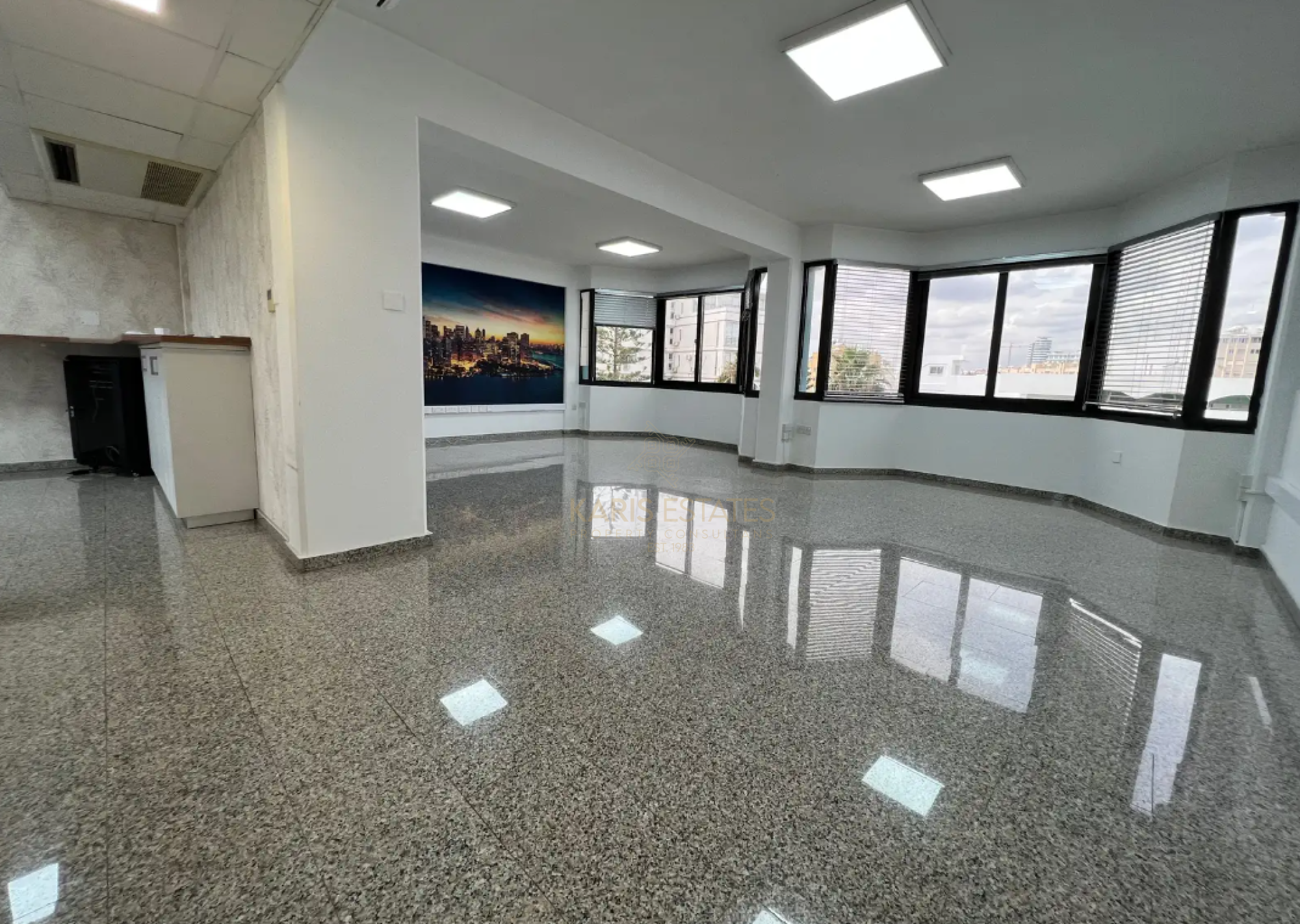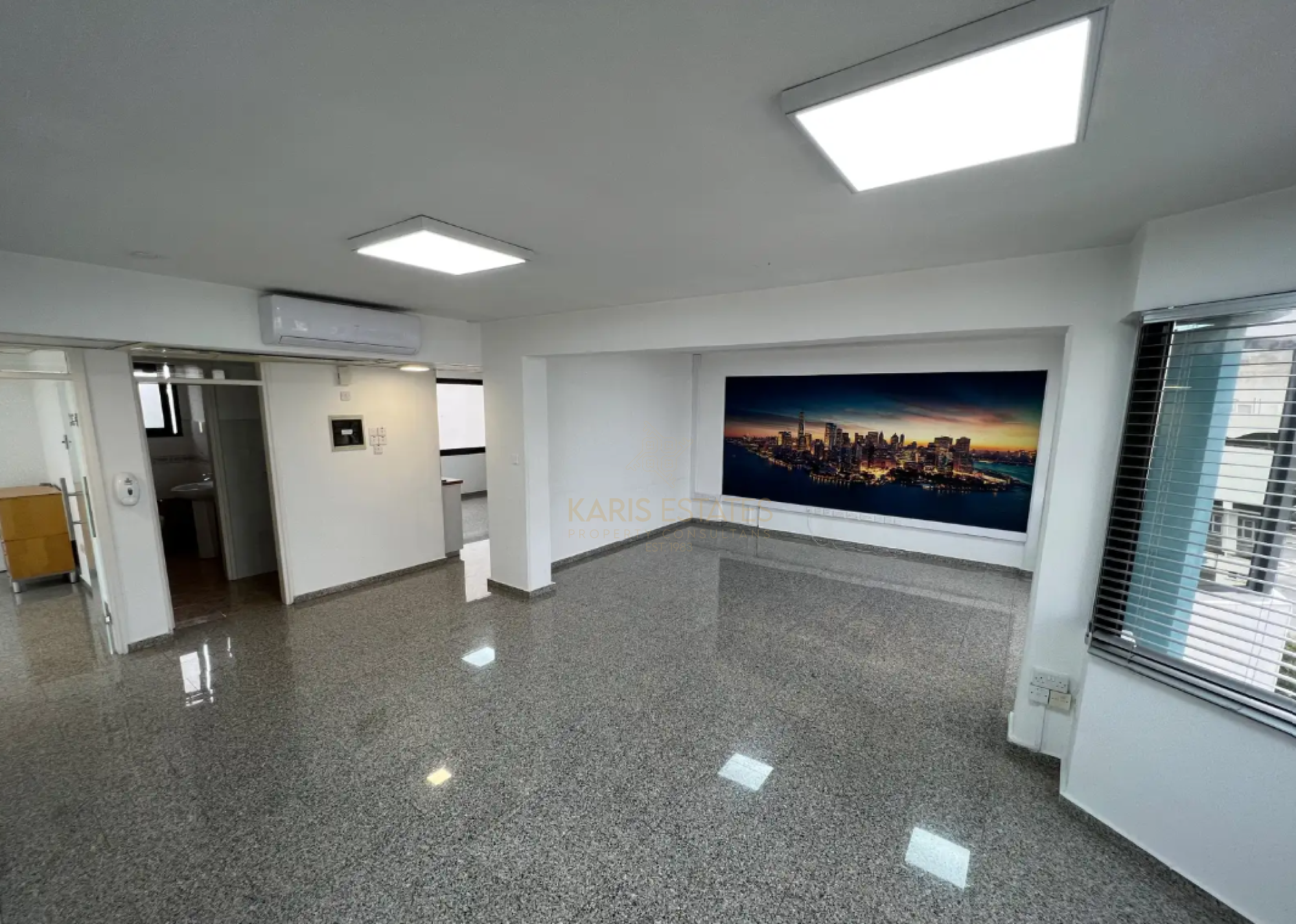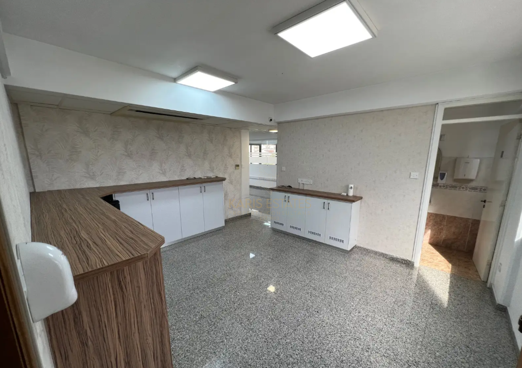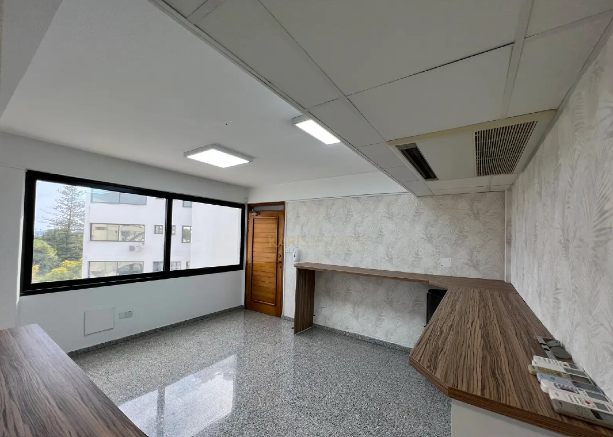 - Open-plan layout with a reception area